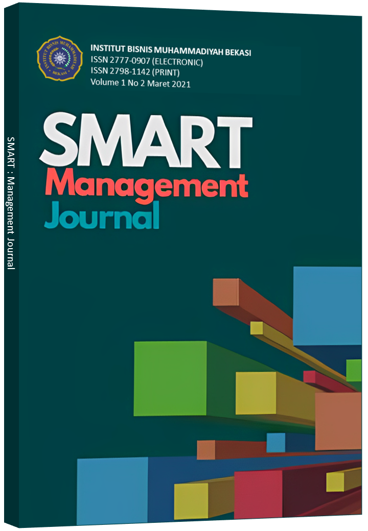 Vol. 1 No. 2 (2021)SMART: Management Journal is a scientific journal managed by the for Research and Community Service Department (LPPM) of Institut Bisnis Muhammadiyah Bekasi, and published by the Management Study Program, Faculty of Economics and Business, Institut Bisnis Muhammadiyah Bekasi. SMART Management Journal specially published articles, ideas, concepts, theories and research results from various fields related to Management, especially related to HR Management, Marketing Management, Operational Management, Strategic Management and Digital Business. SMART Journal is published twice a year, in March and October.
