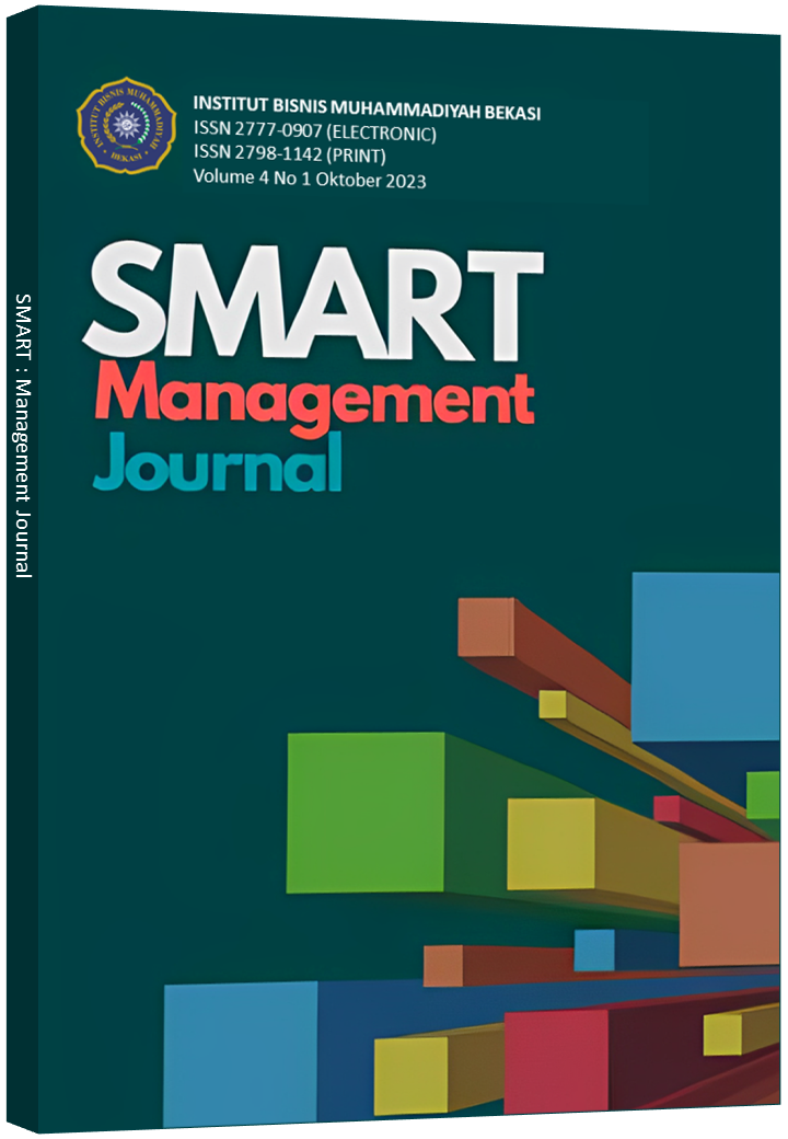 Vol. 4 No. 2 (2024)SMART: Management Journal is a scientific journal managed by the for Research and Community Service Department (LPPM) of Institut Bisnis Muhammadiyah Bekasi, and published by the Management Study Program, Faculty of Economics and Business, Institut Bisnis Muhammadiyah Bekasi. SMART Management Journal specially published articles, ideas, concepts, theories and research results from various fields related to Management, especially related to HR Management, Marketing Management, Operational Management, Strategic Management and Digital Business. SMART Journal is published twice a year, in March and October.